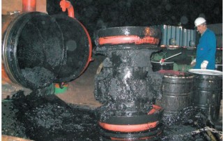 Black powder consists of iron compounds including magnetite (mill scale), iron sulphide, sand, clay, salt, weld slag and even iron. The powder is created during gas production, or in wet gas pipelines where hydrogen sulphide, carbon dioxide or oxygen are present in the gas, or by bacterial corrosion of the steel. These deposits are normally black in color and can be in a dry, dust form or wet when combined with hydrocarbon liquids, compressor oils, etc. The powder is then distributed through the pipeline with the gas flow, but is deposited when the velocity is not high enough to keep it moving (Dr John Smart – “Movement of Black Powder in Pipelines”). As sediment is deposited, the flow in the pipeline is disrupted and reduced, thereby allowing more sediment to accumulate. System through puts are affected and energy costs increased to maintain design flow rates. Blockage can occur especially during cleaning and damage caused to plant such as compressors.